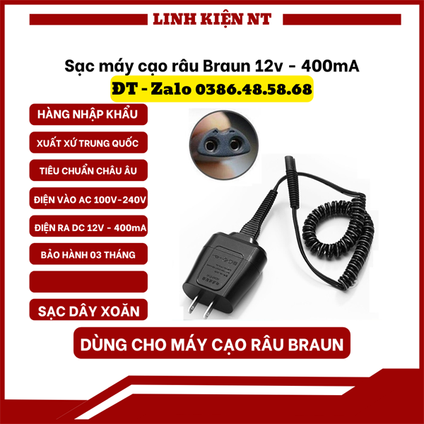 🔌 Sạc Máy Cạo Râu Braun 12v 400mAh Cho Các Model S3, S4, S5, S6, S7, S8, S9